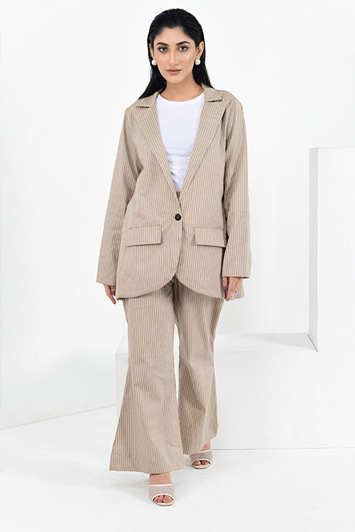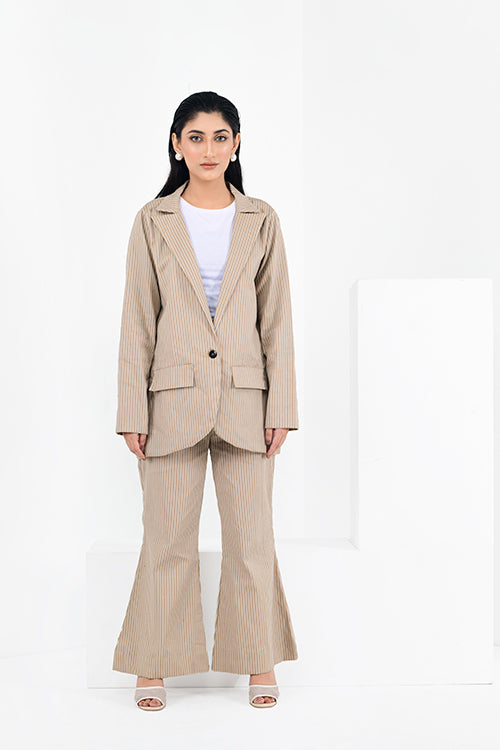 Two piece classy Beige with Bell Bottom Pant winter Cotton suit. Classic and powerful, this cord set is a must have for your winter wardrobe.